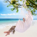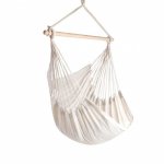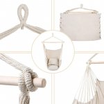 Hamac tip scaun, 100x130 cm, 2 perne, bara din lemn, bumbac bej
