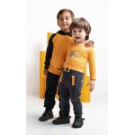 Hanorac cu gluga pentru baieti, realizat din bumbac galben cu negru.