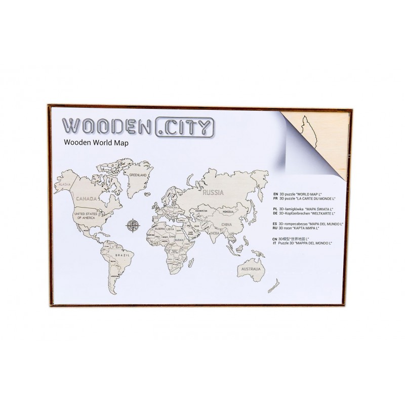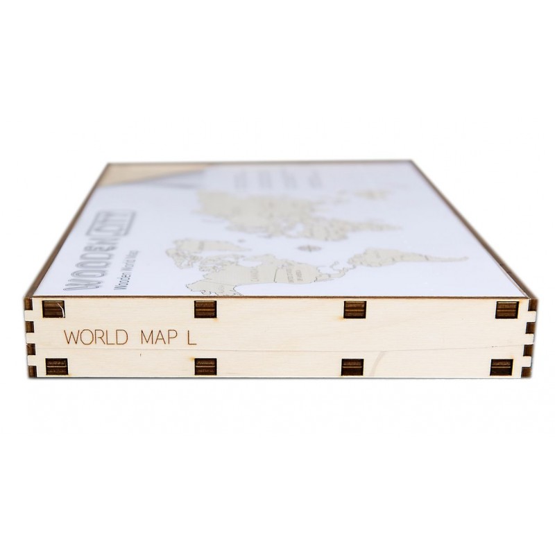 Puzzle 3D din lemn harta lumii L este ambalata intr-o cutie eleganta din lemn gata pentru a fi oferita cadou!