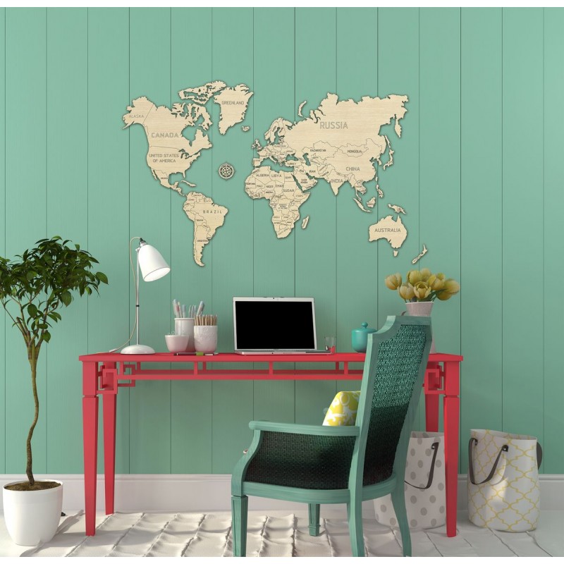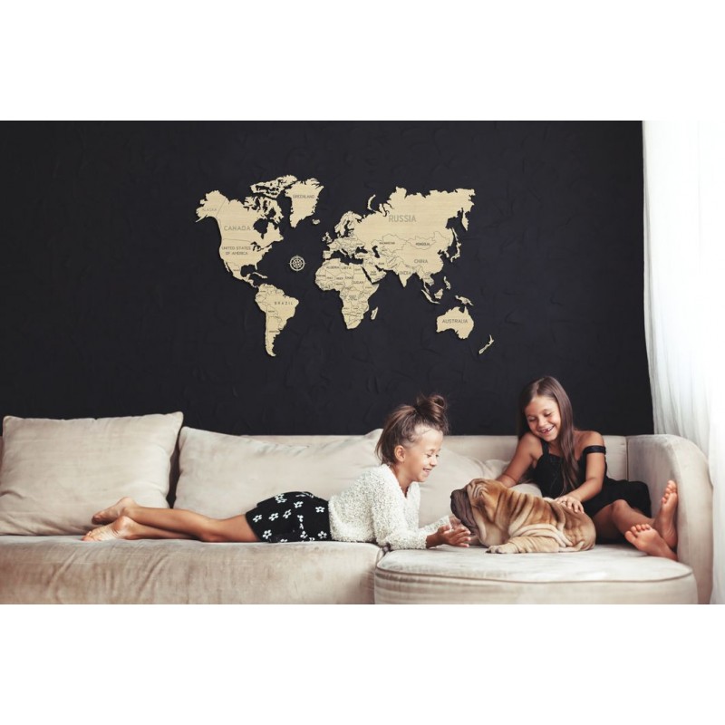 Harta lumii puzzle 3D de perete din lemn de la Wooden City va deveni un unul din punctele de atractie din casa ta!