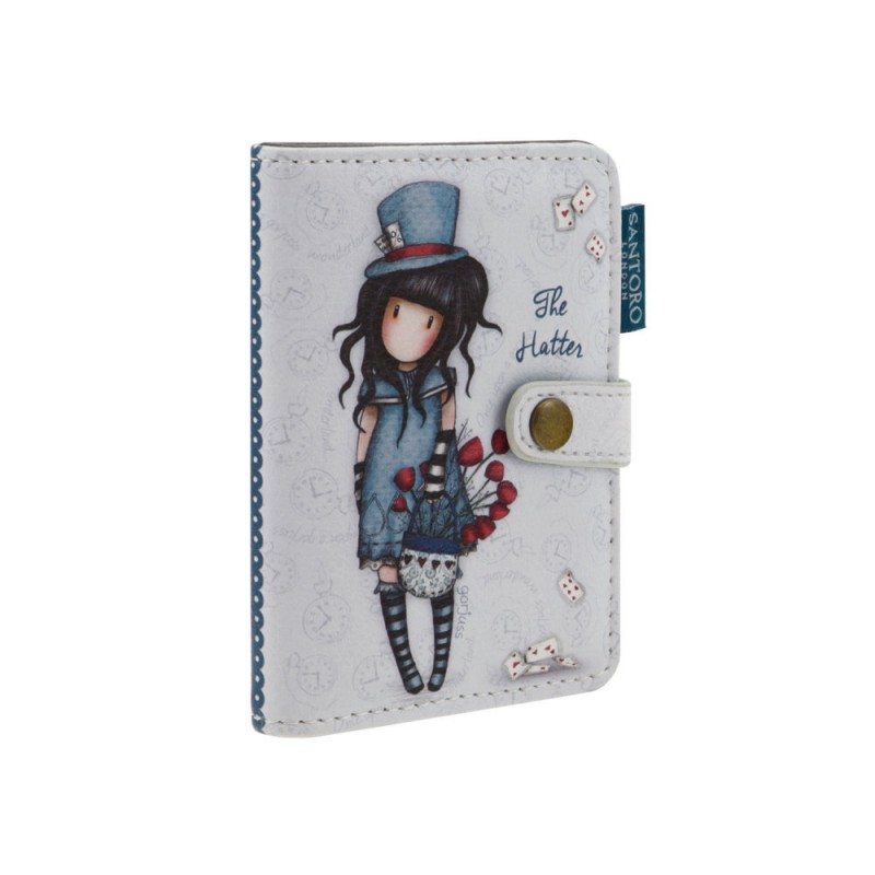 Husa carduri Gorjuss The Hatter de la Santoro este un accesoriu splendid, perfect pentru a va pastra cardurile in siguranta intr-un mod elegant.
