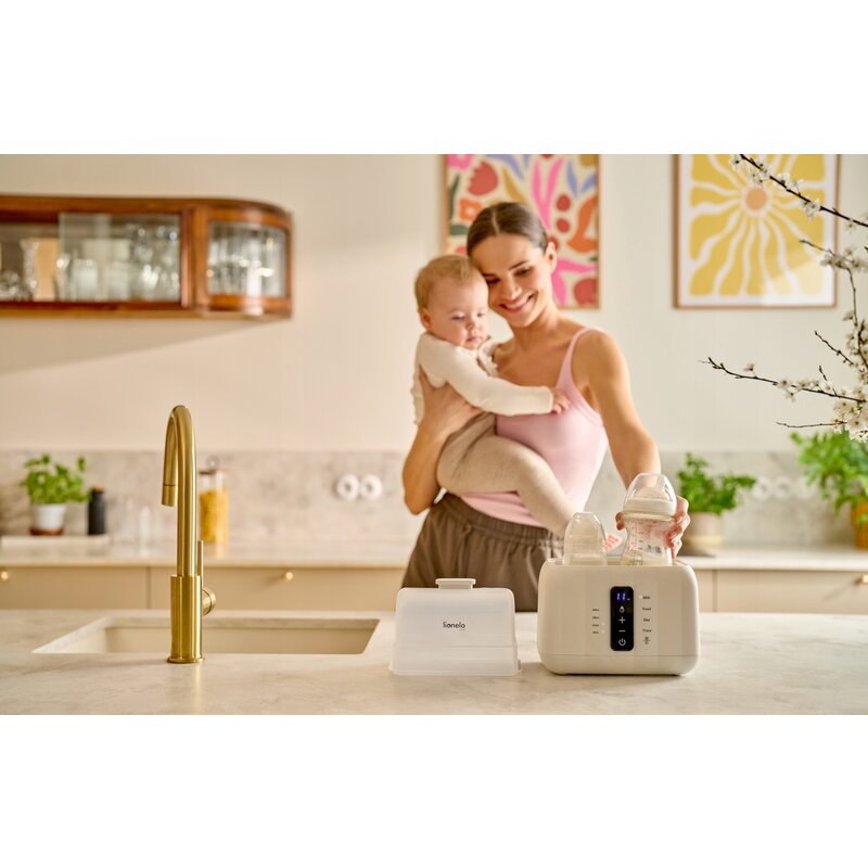 Incalzirea laptelui sau a mesei pentru bebelus devine mai rapida si mai simpla cu incalzitorul de biberoane Lionelo Thermup Double 6 in 1.