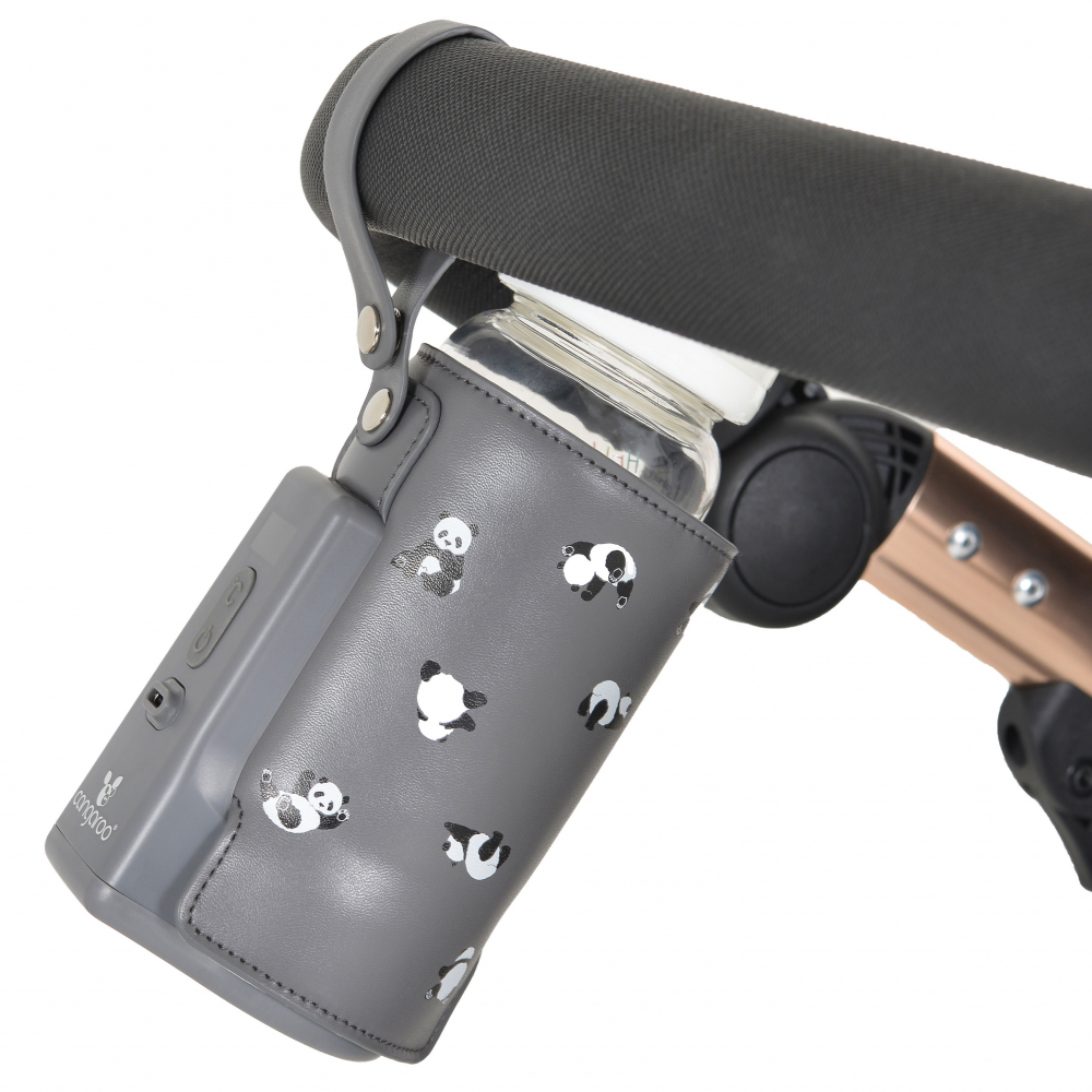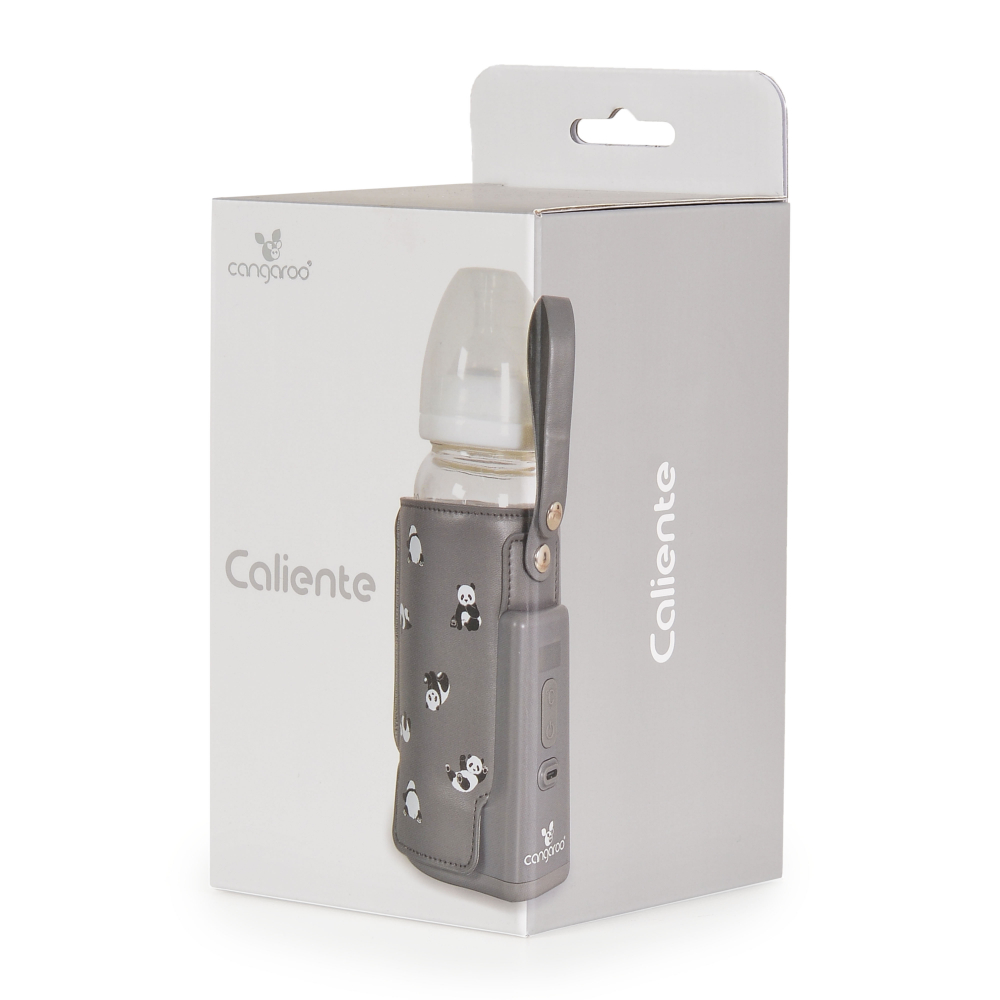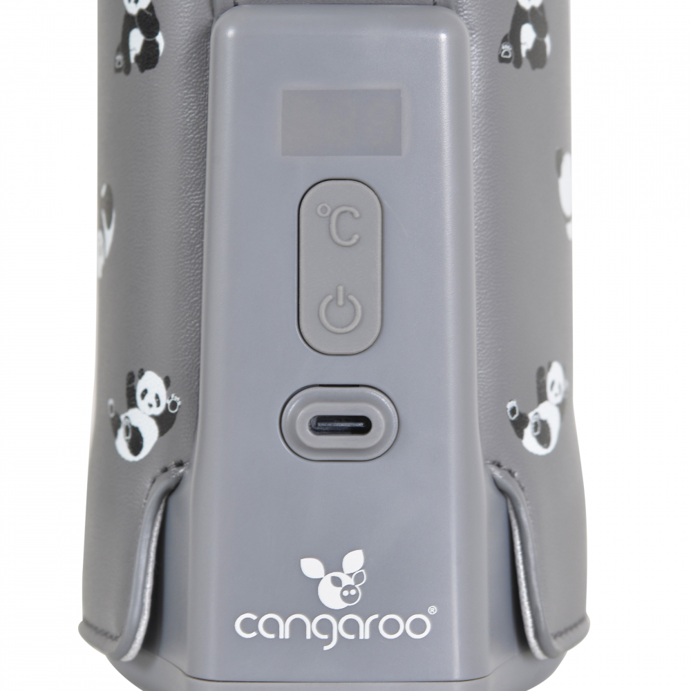 Incalzitor portabil pentru biberoane Cangaroo Caliente Grey cu baterie incorporata,afisaj LED, termostat, incarcare mufa tip C,material PU flexibil de inalta calitate