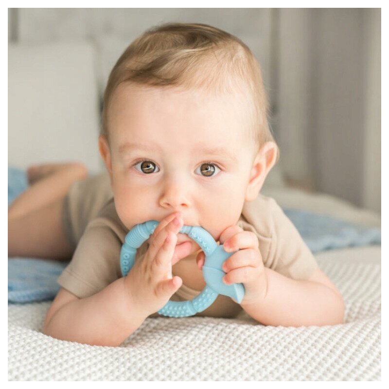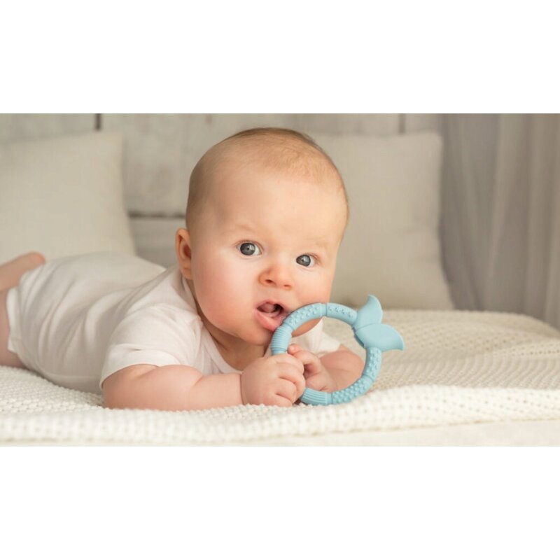 Forma confortabila a inelului faciliteaza prinderea lui, iar texturile diferite de pe suprafata sa vor aduce alinare in perioada de iesire a dintisorilor, masand usor gingiile bebelusului.