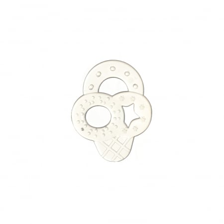 Margini rotunjite: Designul inelului de dentiție include margini rotunjite, asigurând o experiență confortabilă și sigură pentru gingiile delicate ale bebelușului.