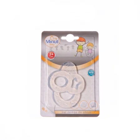 Descoperă inelul de dentiție din silicon Minut Baby, soluția ideală pentru confortul gingiilor în perioada de creștere a bebelușilor.