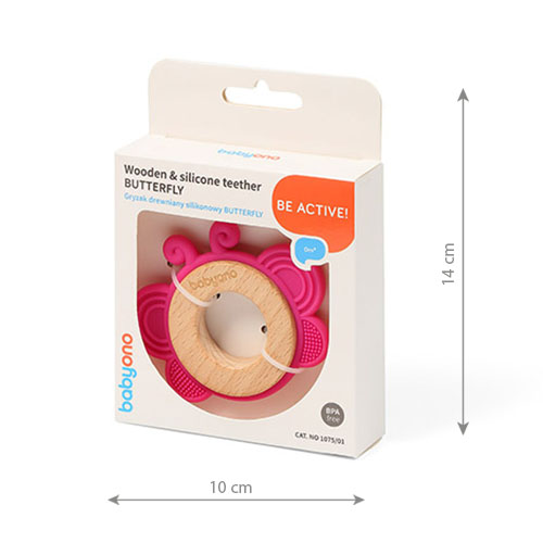 Inel dentitie din silicon si lemn BabyOno Fluture