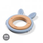 Inel dentitie din silicon si lemn BabyOno iepuras albastru