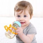 multiple functii: inel gingival, suport pentru biberon/pahar, jucarie;