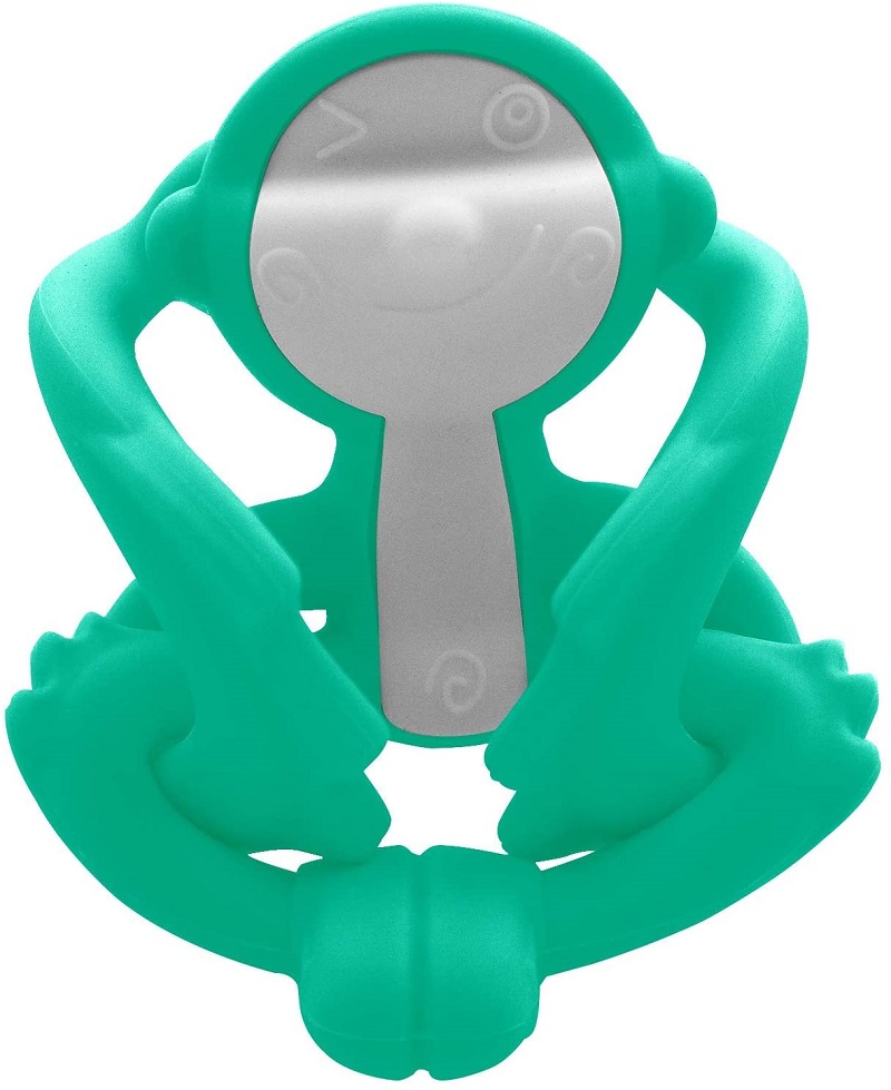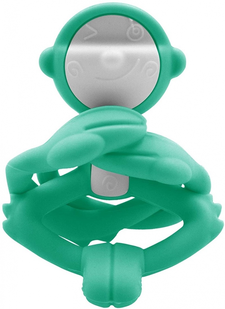 designul special de forma unei maimute haioase are o suprafata cu rizuri pentru masajul gingiilor bebelusului;