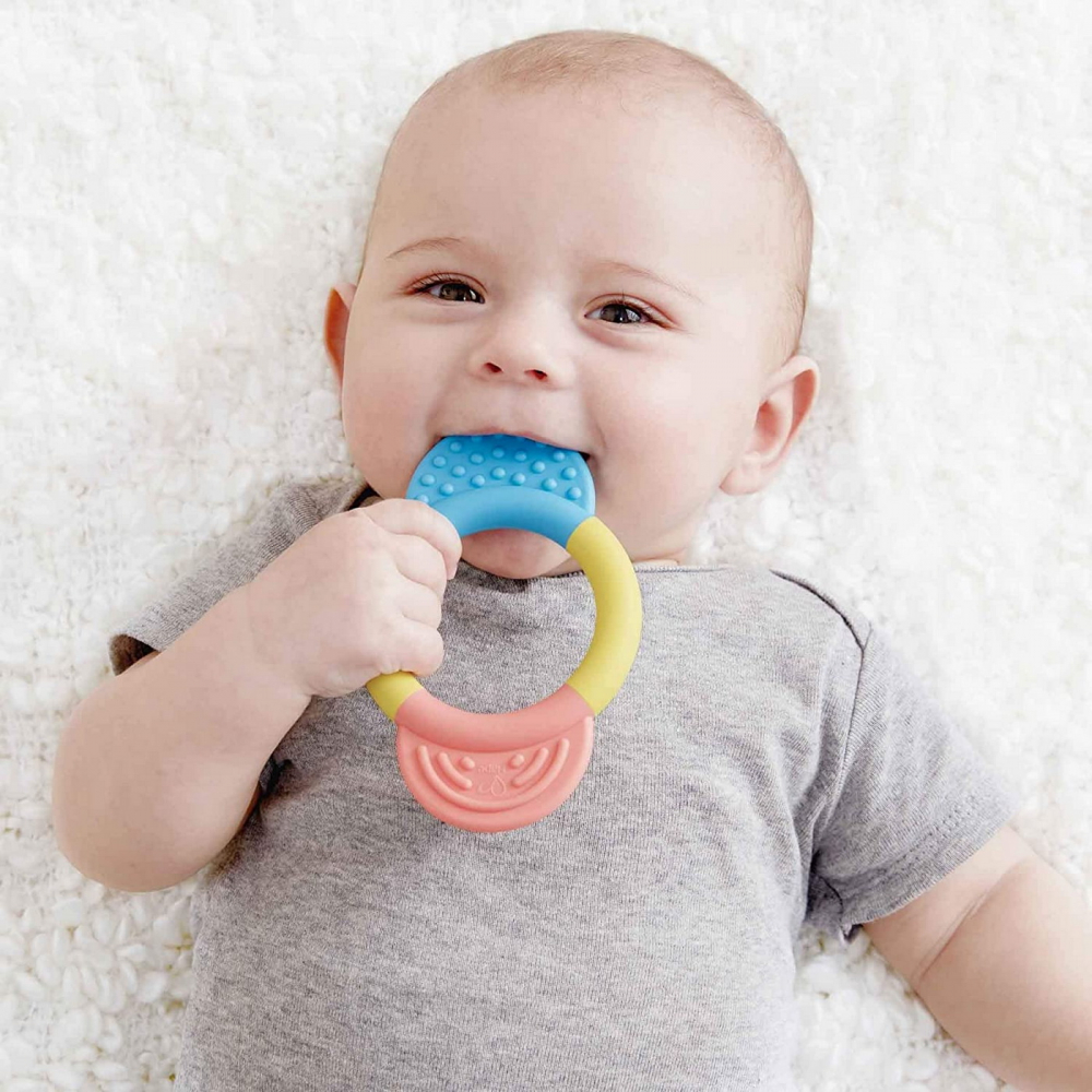 Inel pentru dentitie realizat dintr-un material sigur, pe baza de orez.