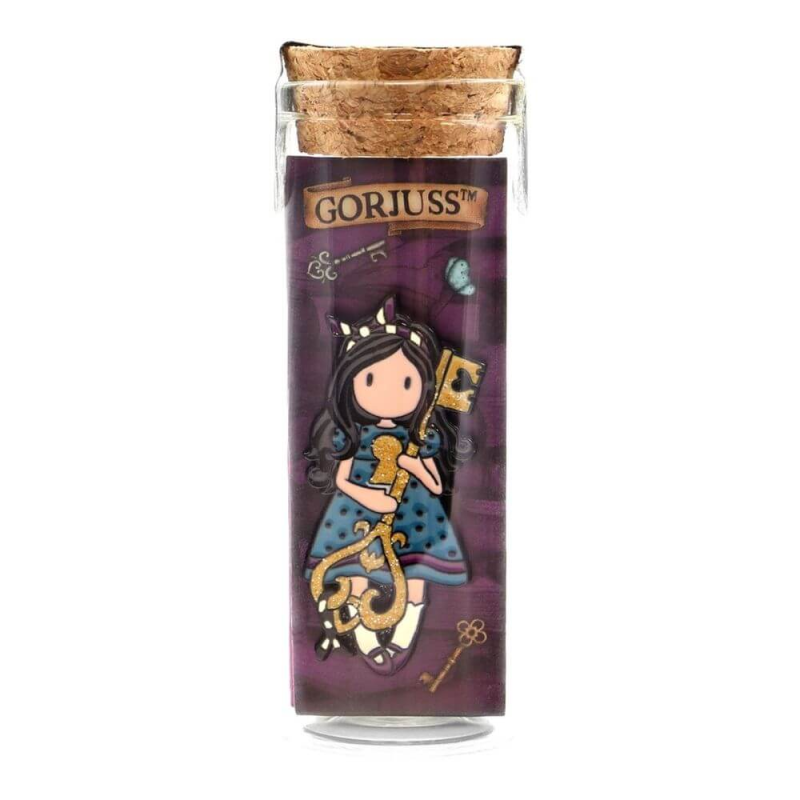 Insigna emailata Gorjuss Curiosity vine intr-un mini borcan de sticla dragut, facandu-l cadoul perfect pentru o persoana draga.