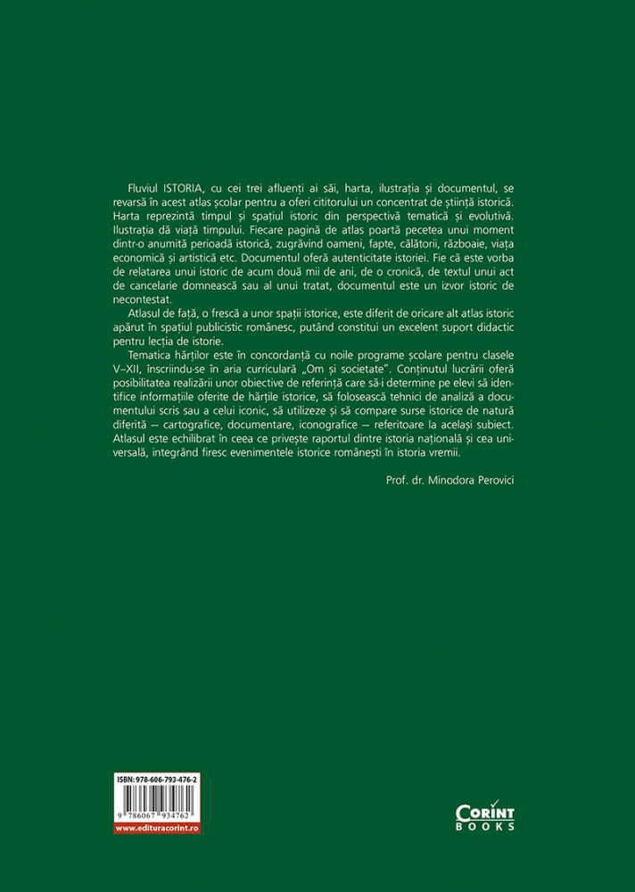 Atlasul de fata, o fresca a unor spatii istorice, este diferit de oricare alt atlas istoric aparut in spatiul publicistic romanesc, putand constitui un excelent suport didactic pentru lectia de istorie.