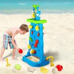 Atractii multiple: cascada este dotata cu roti de apa, forme, o stropitoare, lopeti si alte accesorii, transformand jocul cu apa intr-o experienta complexa.