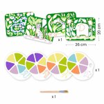 Conținut: 4 scene de pictat, 4 palete cu cerneală imprimată, pensulă cu mâner din lemn