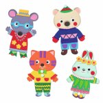 Un set complet de colaje pentru a decora 4 personaje cu o gamă largă de elemente texturate (pâslă, spumă, paiete, panglici, buline, ochi googly). Alege un personaj și lipește elementele pentru a-l accesoriza. Rezultat adorabil!