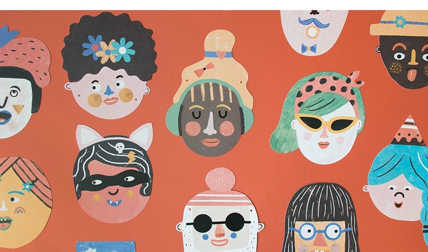 Jocul conține 16 fețe dimensiune 18×21 cm, 150 de stickere repoziționabile, șnur din bumbac, pentru a crea portrete ale prietenilor vechi sau noi, cu care apoi poți realiza un decor ușor…excentric.