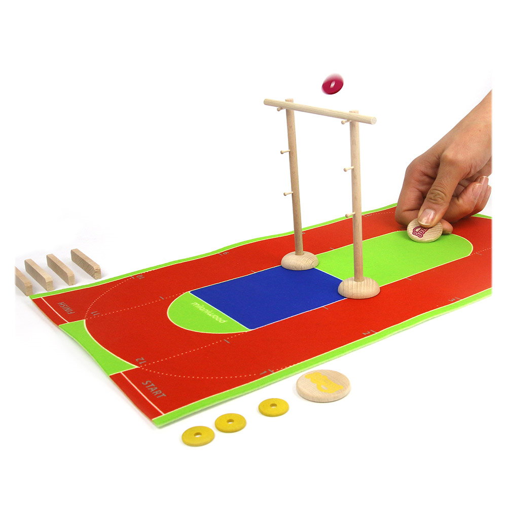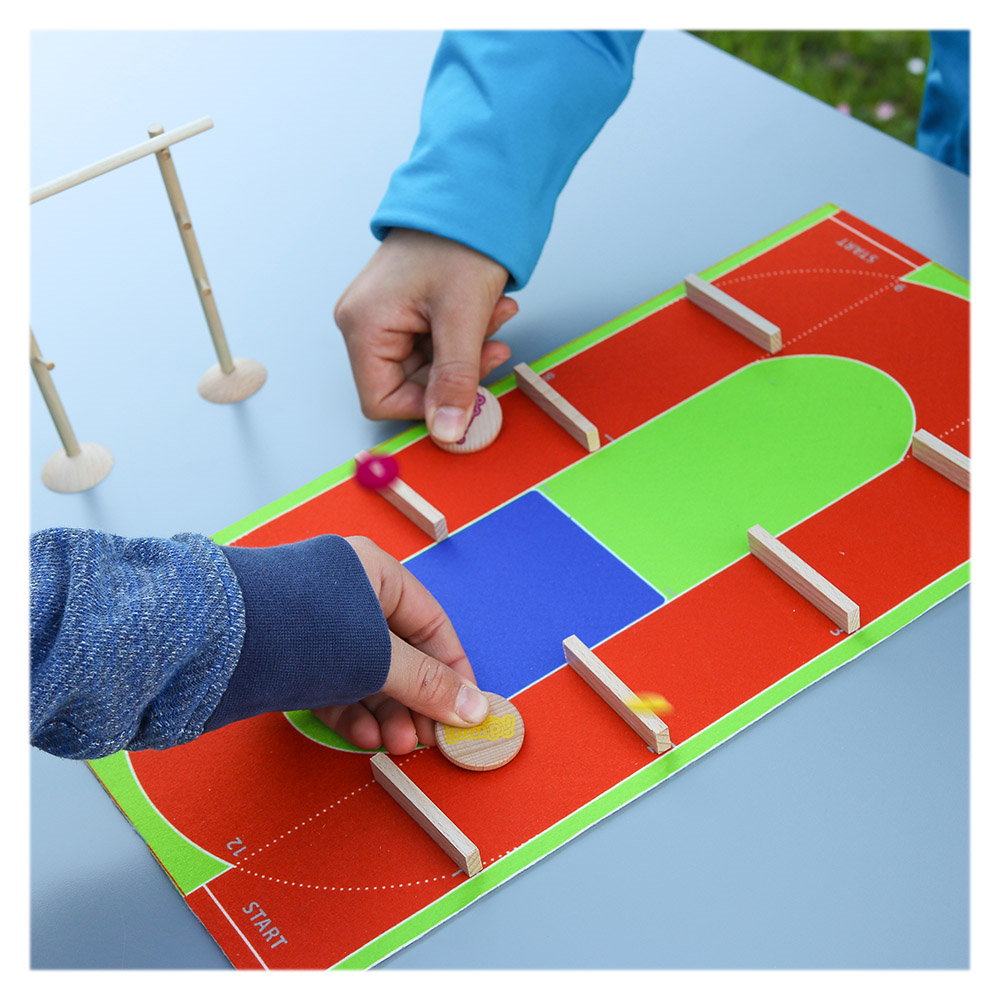 • Cinci probe de atletism intr-un singur joc de tiddlywinks sau jocul de societate clasic purici sau fotbal cu nasturi, cu piese din lemn, avand ca tematica atletismul!
