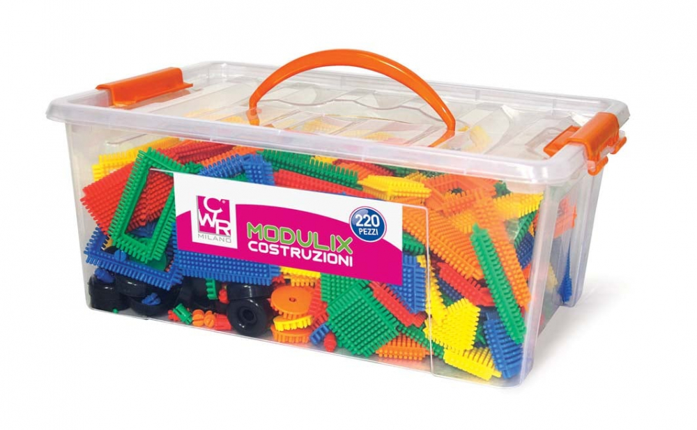 Conține 220 elemente de diferite forme și culori într-o cutie mare din plastic de 38 x 26,5 x 16 cm.