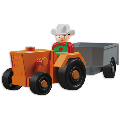1 figurină, tractor cu remorcă, cal, accesorii și autocolante incluse.
