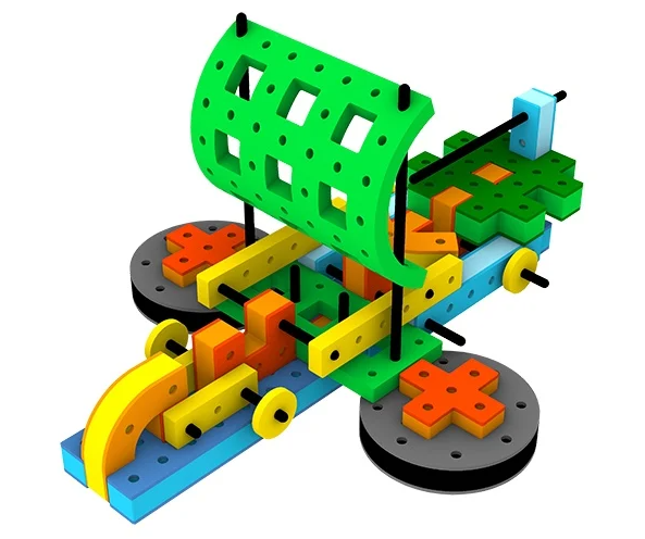 Cu 84 de piese versatile, acest set oferă posibilități nelimitate pentru a construi mașini rapide, bărci plutitoare și multe altele.