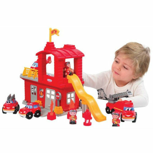 - Setul este compus 3 masini de pompieri cu fete zambitoare, un elicopter,o statie de pompieri etajata cu tobogan,un hidrant,3 figurine ale pompierilor si alte piese pentru un joc perfect si distractiv.