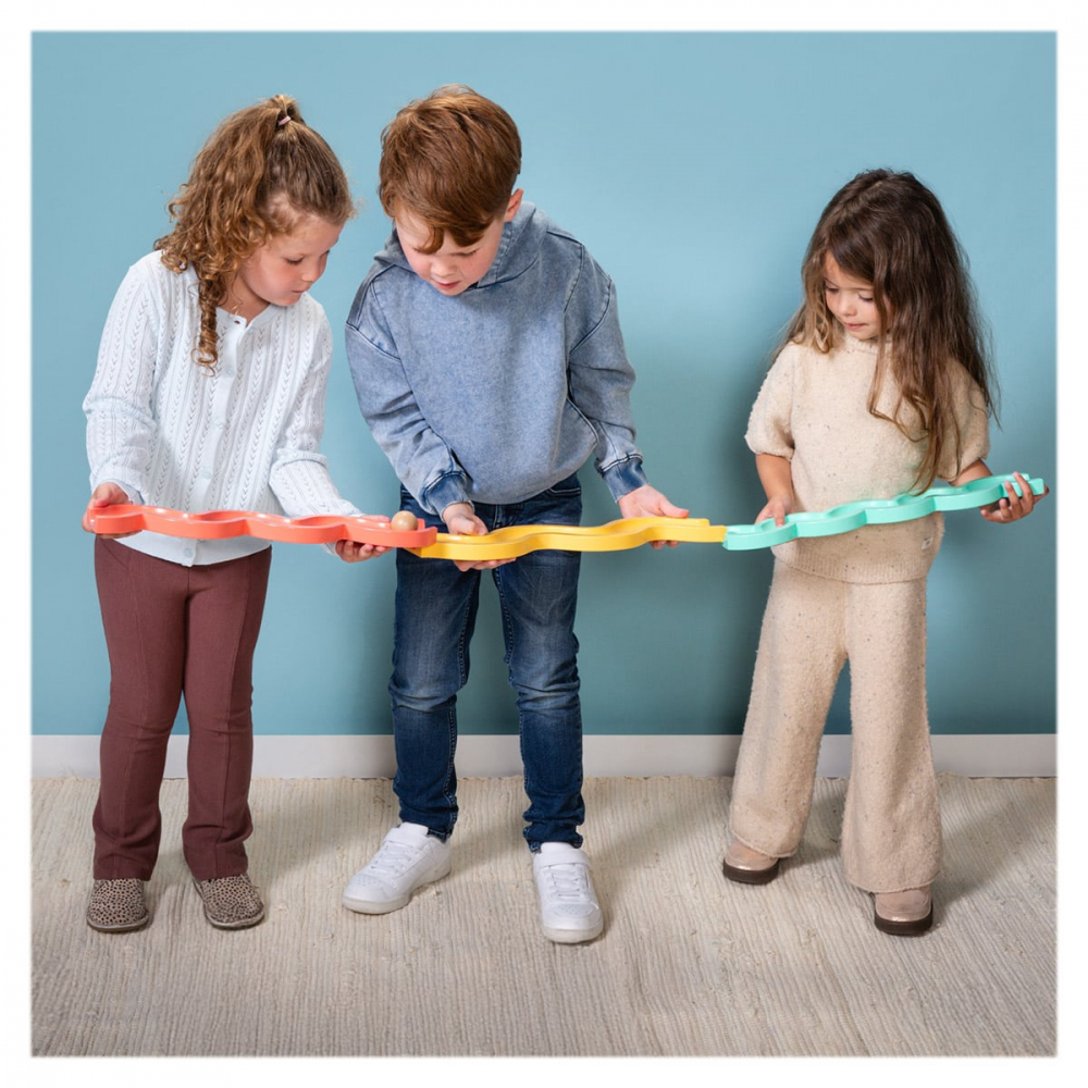 • Traseu cu bile Pass&Play de la BS Toys este un joc distractiv de cooperare sub forma unei piste pentru echipe cu 3 segmente din lemn, fiecare avand un model unic.