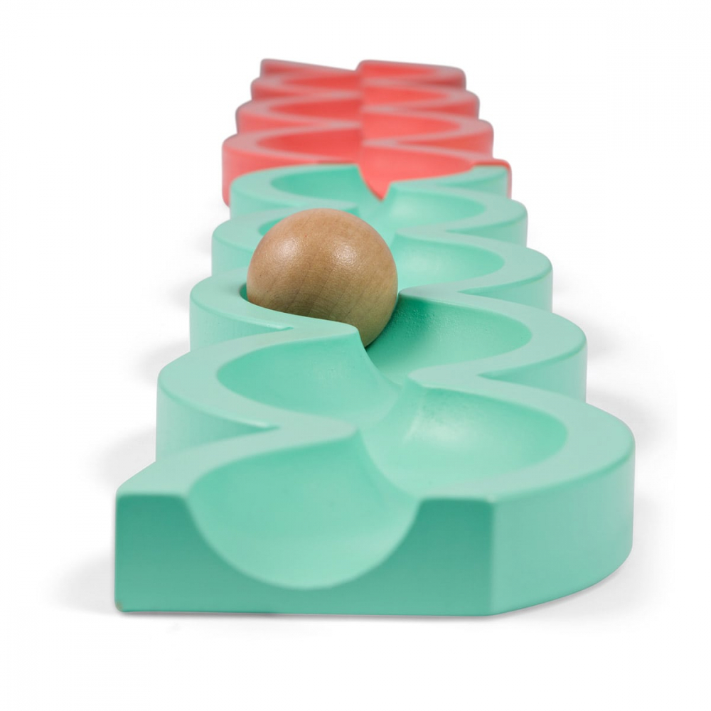 • Traseul este alcatuit din 3 segmente din lemn, care se pot uni ca traseu modular, permitand bilei sa ruleze de la inceput pana la final.