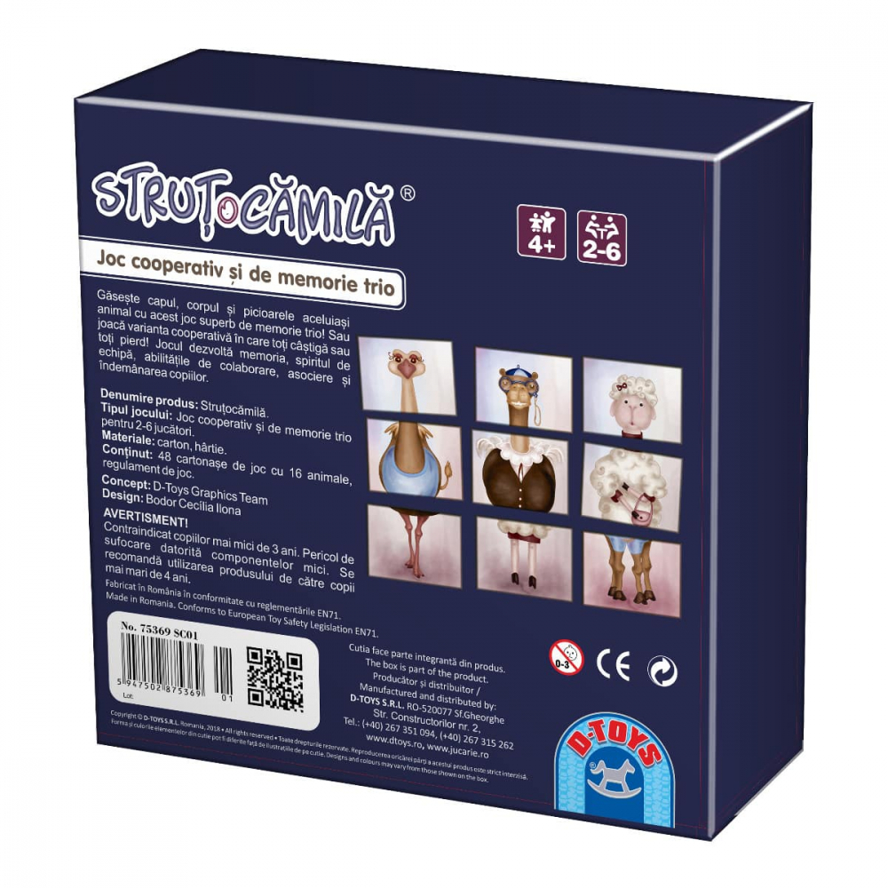Struțocămila este un joc pe placul celor mici care fac și desfac la infinit piese ce compun ilustrații adorabile, cu animăluțe simpatice, care le stârnesc imaginația fără limite.