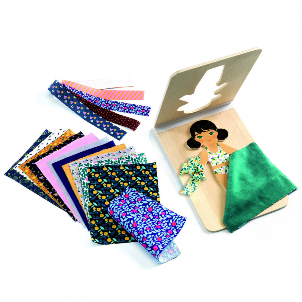 Copiii se vor distra amestecând diferite țesături și panglici pentru a crea ținute fabuloase.