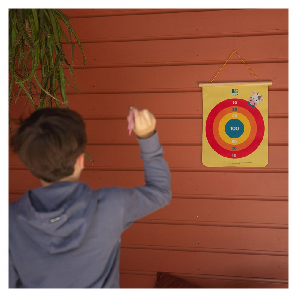Dartsul magnetic de la BS Toys este un joc clasic de aruncare la tinta, adaptat pentru copii, sigur si distractiv, ce vine cu o tinta suspendata cu doua fete, pentru distractie dubla.