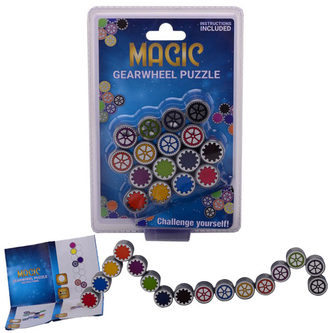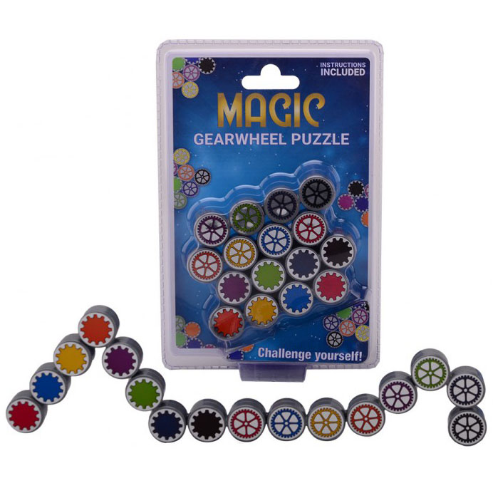 Jocul contine 16 rotite colorate, modele diferite, pe care trebuie sa le imbini astfel incat intregul angrenaj sa se roteasca.