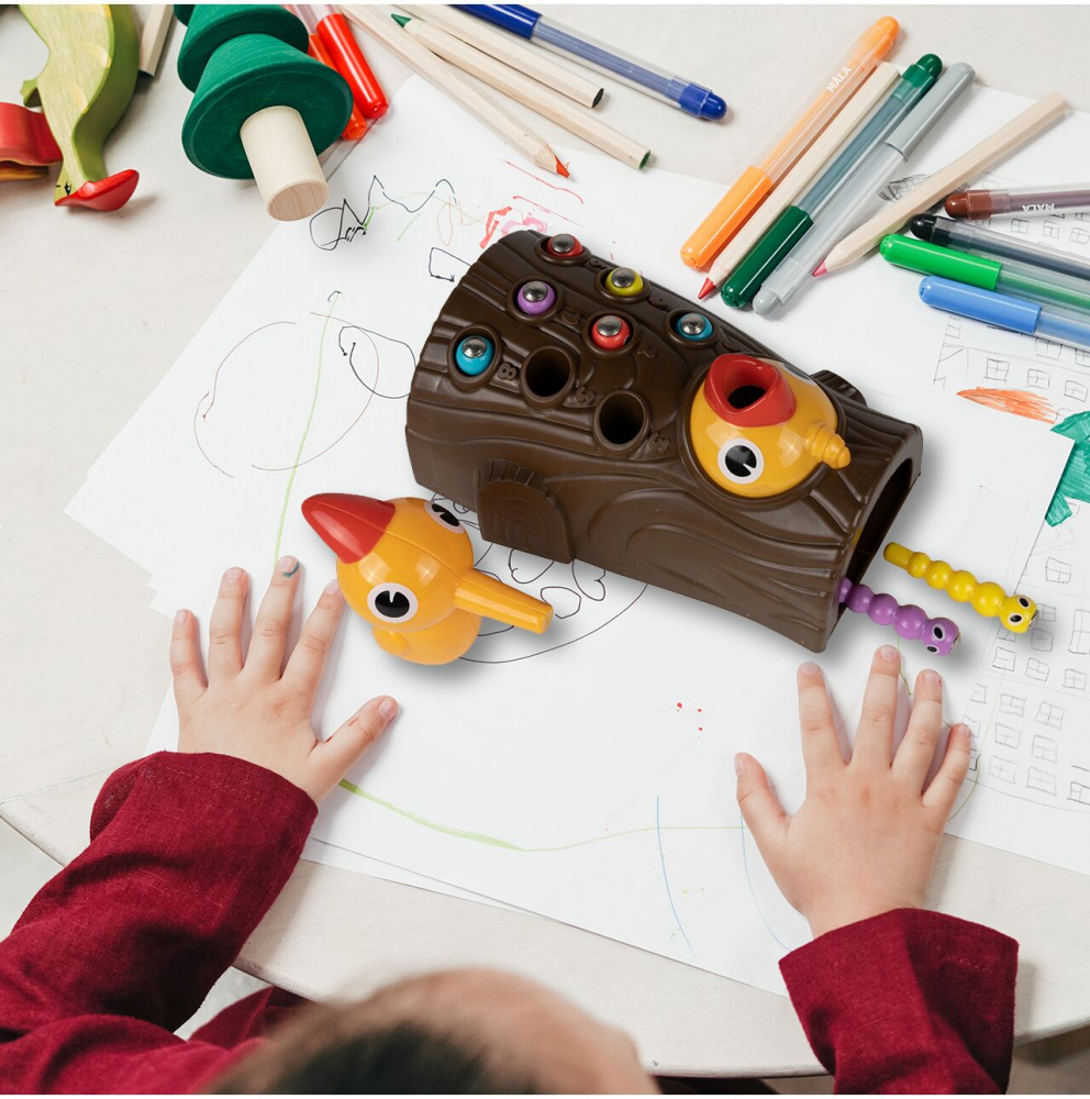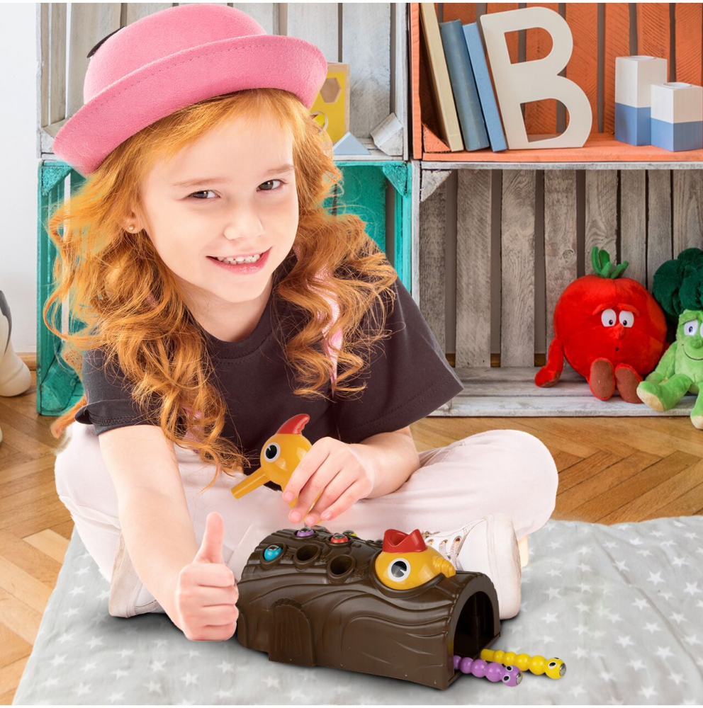 Antreneaza-ti dexteritatea cu ajutorul jocului de indemanare ''Ciocanitoare cu 8 viermisori'' .