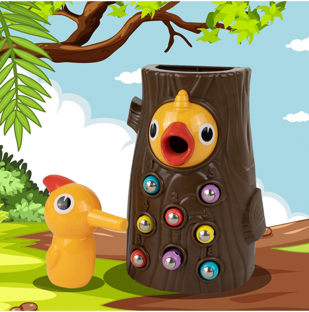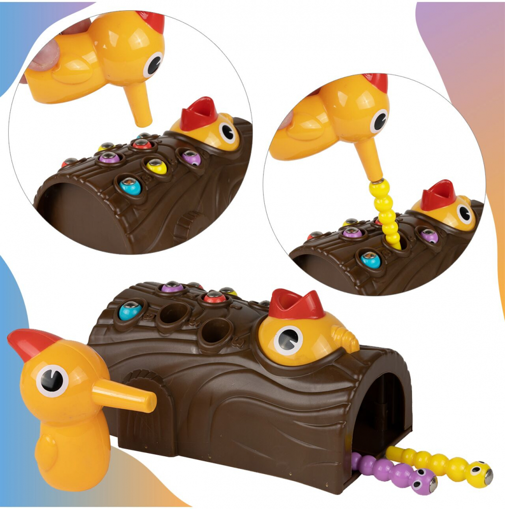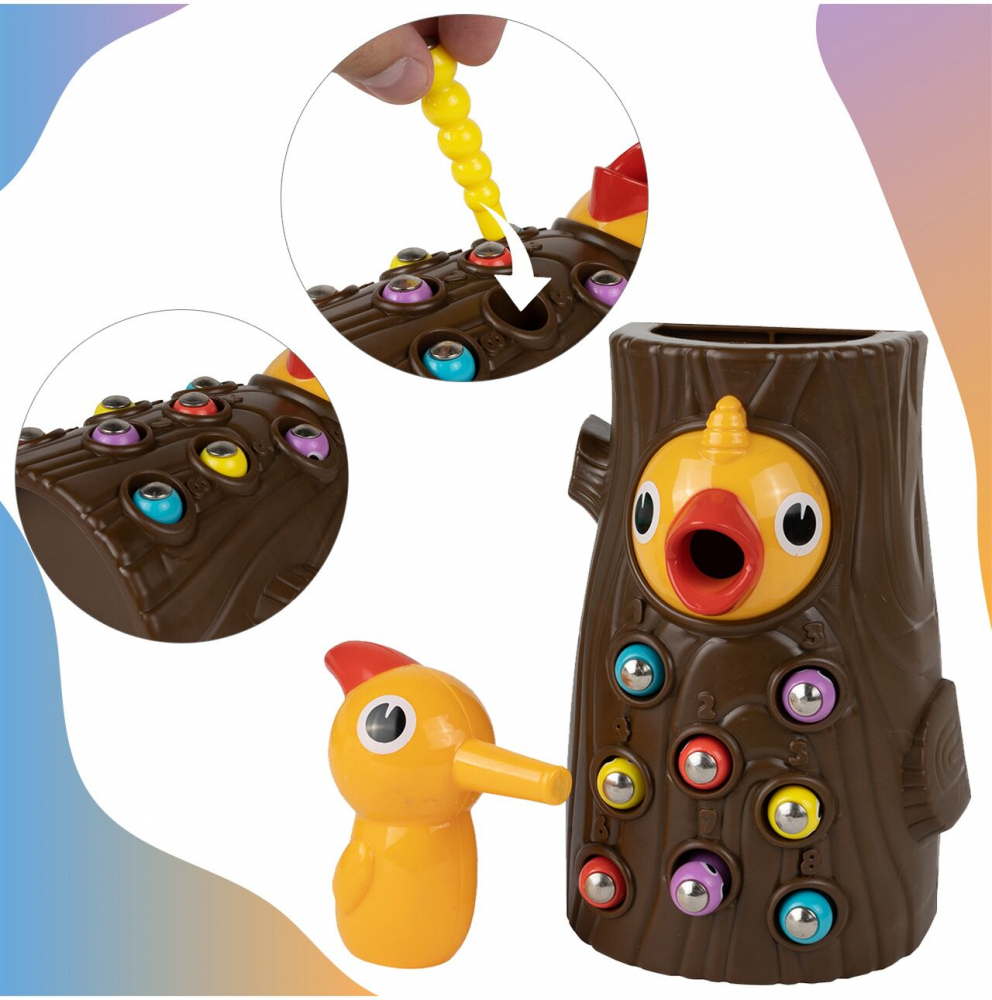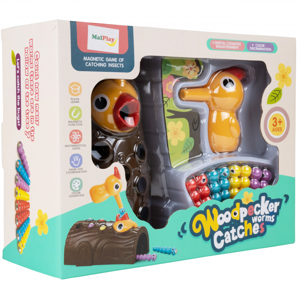 Joc de indemanare magnetic pentru copii Malplay, ciocanitoare cu 8 viermisori