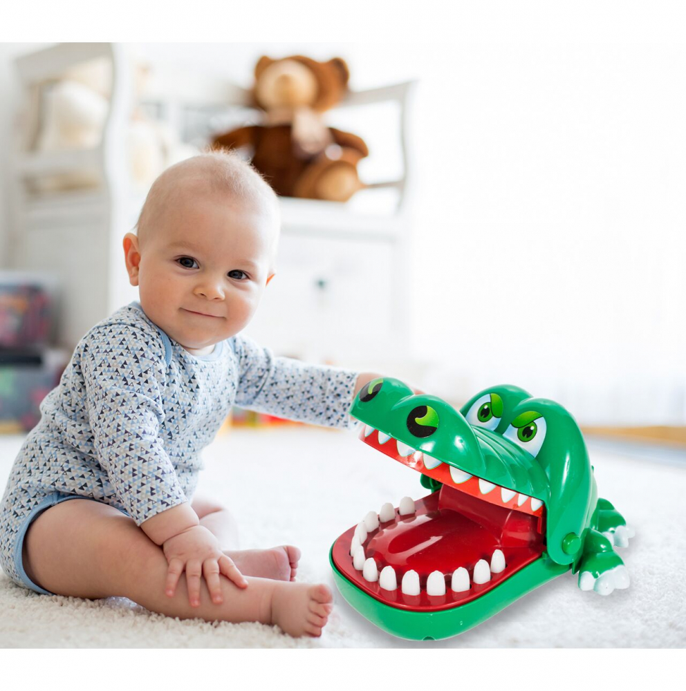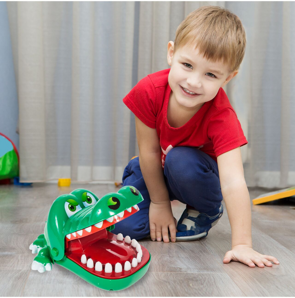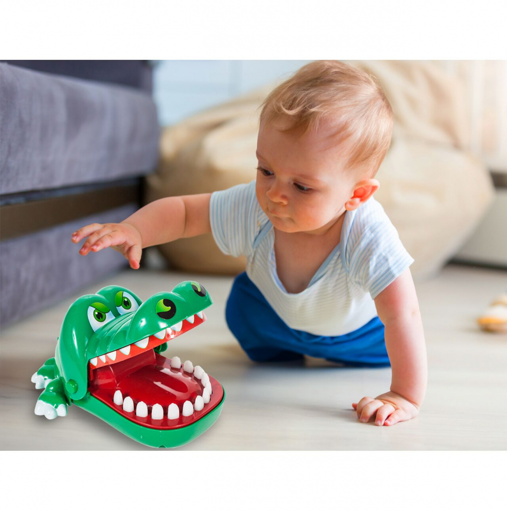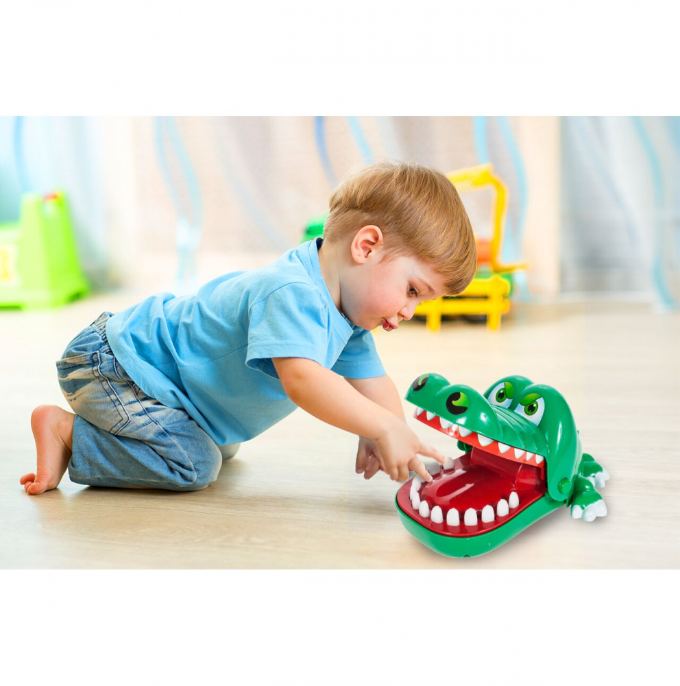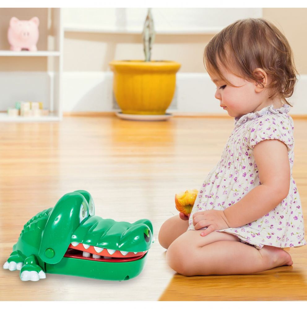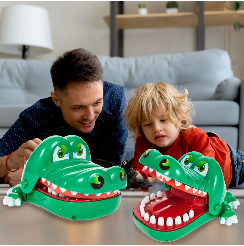 Mecanism: Jucatorii apasa pe rand pe dintii crocodilului. Cand crocodilul simte durere, isi inchide gura si elimina jucatorul din joc.