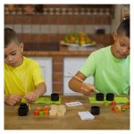 • Jocul include: 8 ingrediente din lemn colorat (100% FSC) pentru a face 6 maki (sushi), 2 covorase verzi de pasla, 2 perechi de betisoare de bambus, 33 de cartonase cu modele de sushi.