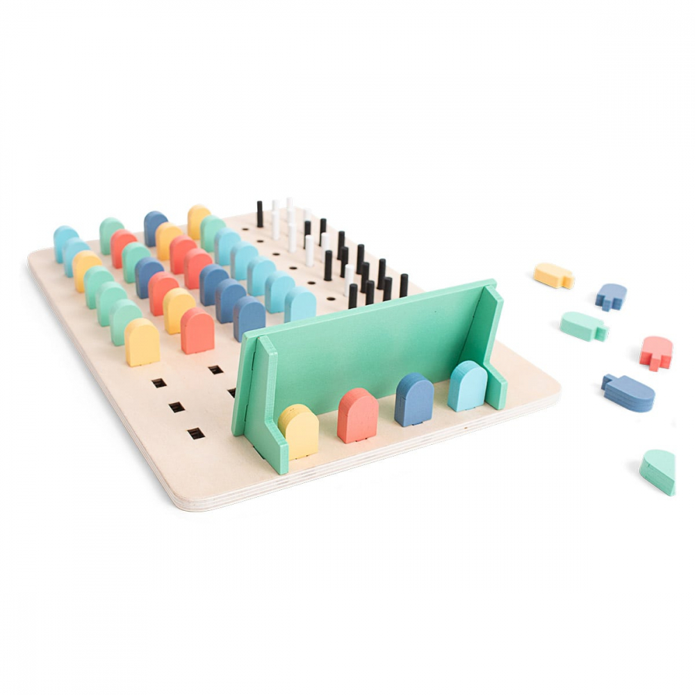 Acest captivant joc de puzzle din lemn ii provoaca pe cei mici sa gandeasca critic si sa rezolve problemele in timp ce se distreaza, dezvoltandu-le abilitatile de provocare competitiva, gandirea orientata catre solutii, rationamentul logic, concentrarea.