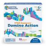 copiii isi construiesc propriile curse colorate din piesele de domino, pline de obstacole pentru a rezolva provocarile STEM incluse