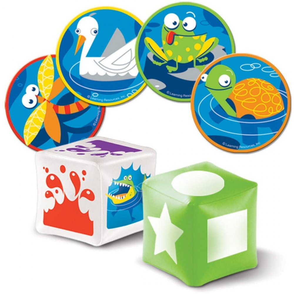 Setul contine: covoras de vinilin, 20 de indicatoare de joc (4 animale, 5 din fiecare categorie), 2 cuburi gonflabile, ghid de activitate.