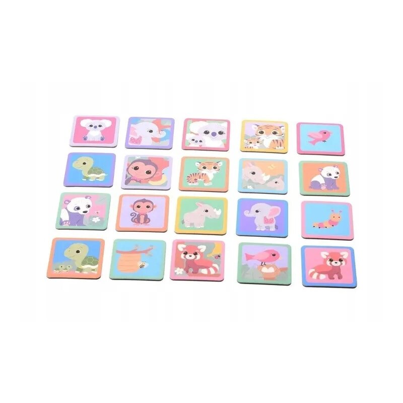 Jocul de memorie Memo consta din 40 de carti pastelate frumoase cu 20 de perechi de animale din colectia The Wildies Family.