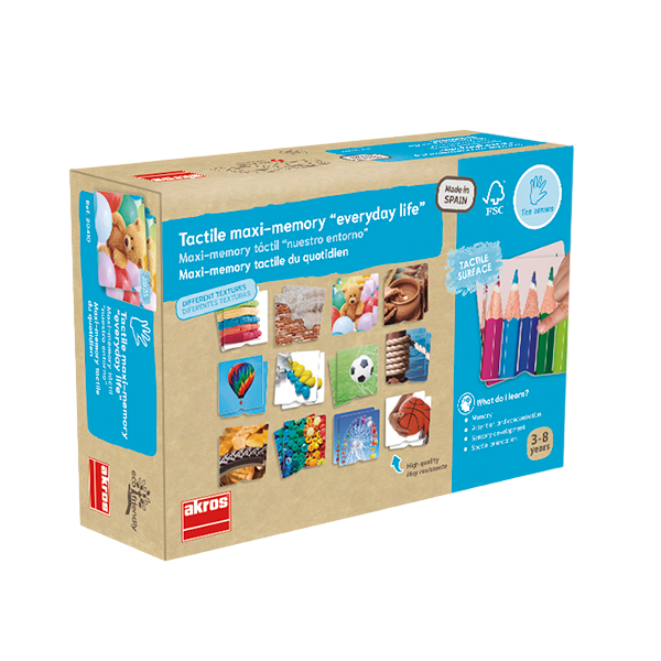 Un joc de memorie tactil in format mare, cu diferite texturi ce prezinta imagini reale din viata de zi cu zi pentru a lucra la discriminarea tactila, memoria vizuala si atentia prin simtul atingerii.