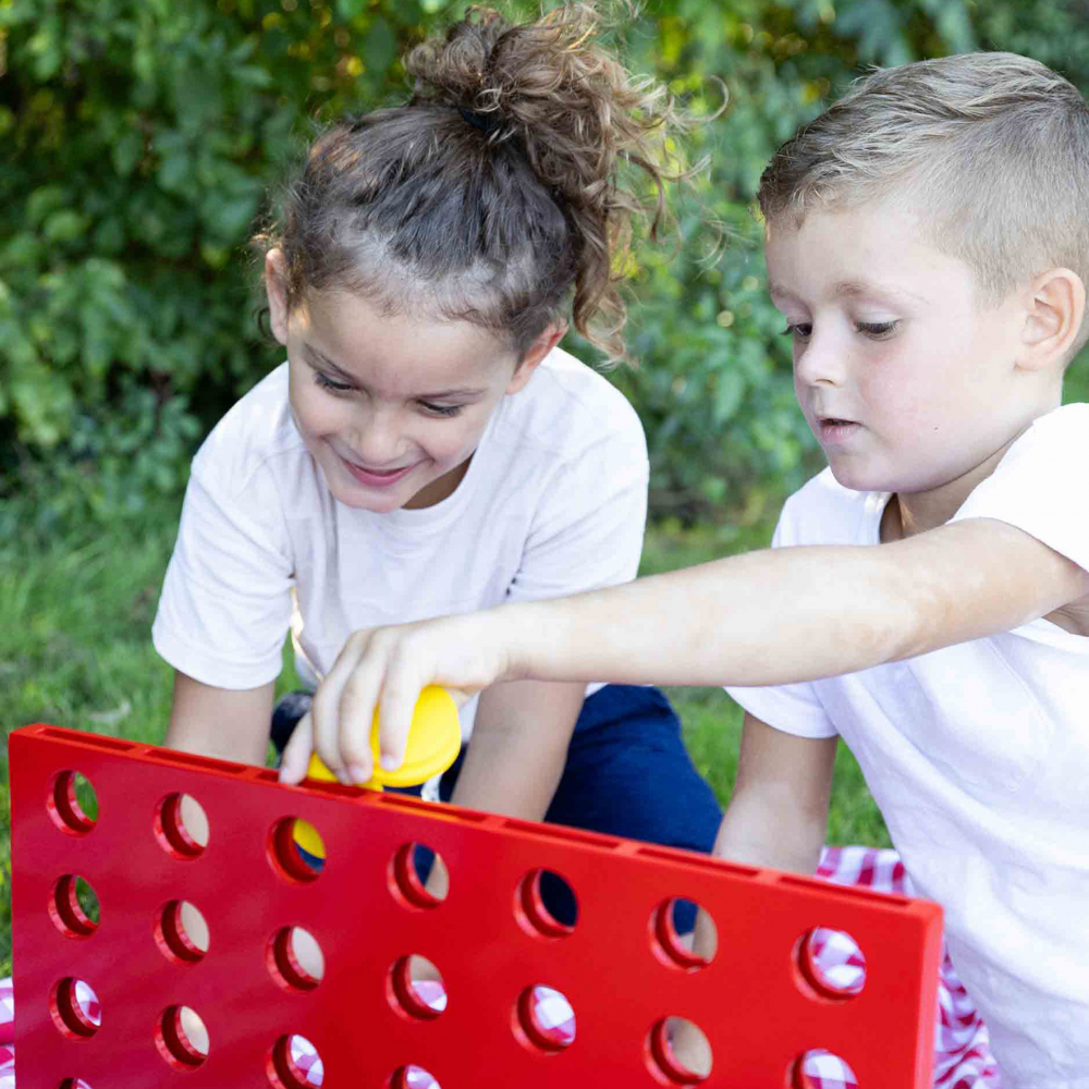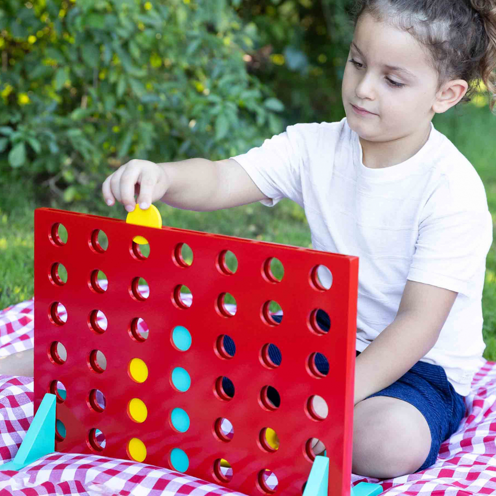 Patru in rand XXL! Acest cadru din lemn din 3 parti, in format XXL, ofera copiilor jocul clasic intr-o varianta marita.