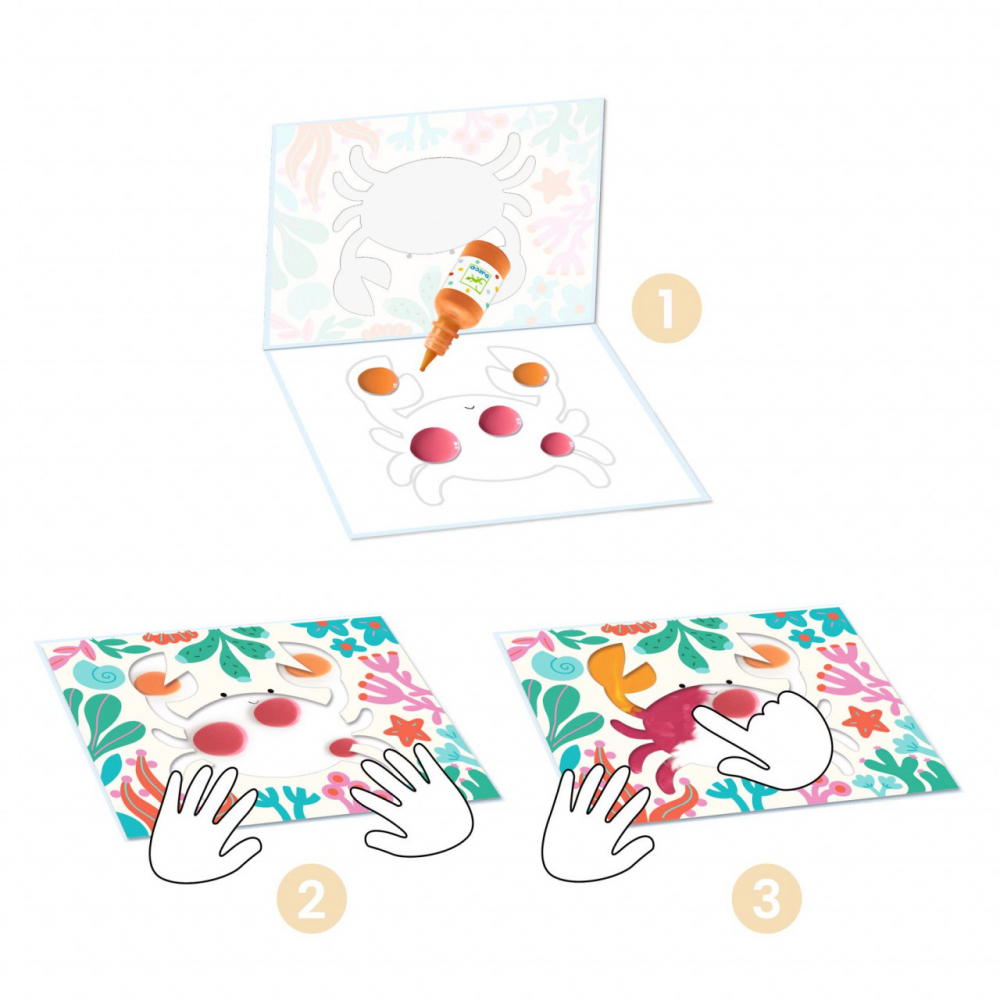 Apoi, distrează-te împrăștiind vopseaua în timp ce apeși pe buzunar cu degetele pentru a colora animalele fără să te murdărești!