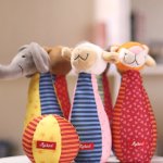 Copiii incep sa inteleaga cum sa doboare popicele in jurul varstei de 10-12 luni, dar figurinele moi, in forma de animale, ii fascineaza mult mai devreme, devenind un mod distractiv si sigur de a se juca.