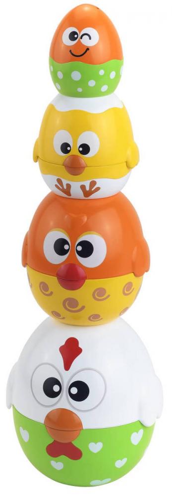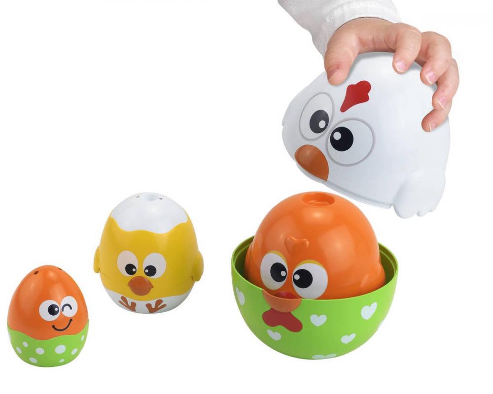 Desfacand puiutii si potrivindu-i unul in altul sau unul peste altul copilasul va invata notiuni precum mai mic si mai mare, va invata sa numere si sa identifice culori. In plus, se va distra pe cinste cand va descoperi simpaticul ousor ascuns in ultimul puiut. Pentru un joc si mai palpitant puteti ascunde diferite obiecte in cele 4 piese de joc si apoi sa ii puneti pe copilasi sa le caute.