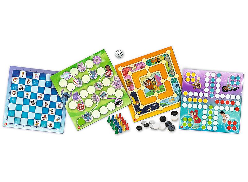 Setul include jocuri populare precum Scari si tobogane, X si 0, Dame, Nu te supara, frate! si multe altele, toate cu personaje Disney precum Mickey, Lilo si Stitch, Aladdin si Simba.