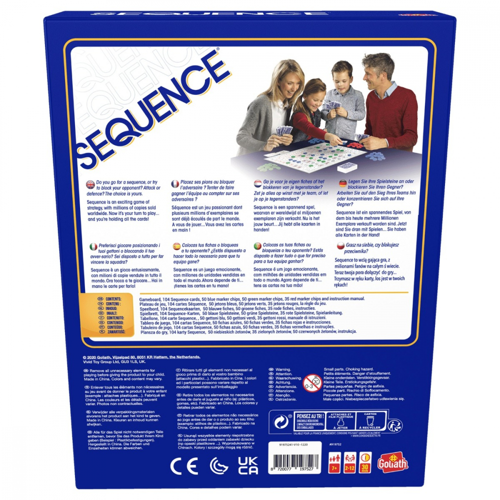 Descriere Continut: 1 tabla de joc, 104 carti Sequence, 50 de jetoane albastre, 50 de jetoane verzi, 35 de jetoane rosii, regulile jocului.