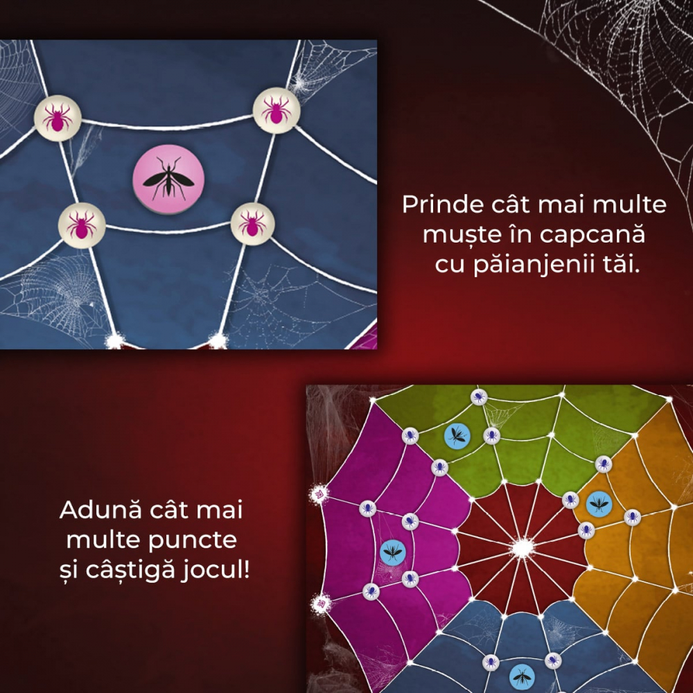 Abilitățile strategice se îmbină perfect cu norocul în acest joc antrenant, întrucât jucătorii dau cu zarul pentru a se mișca pe tabla de joc ce seamănă cu pânza de păianjen.