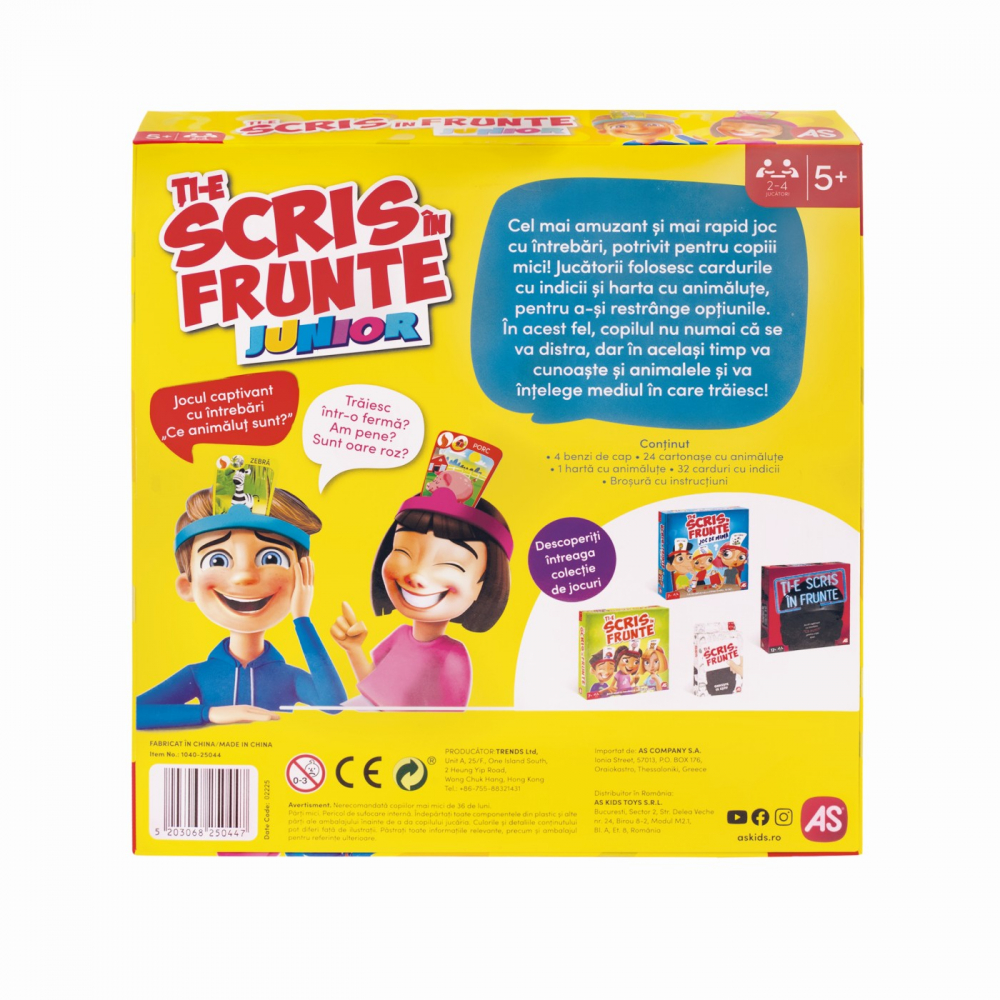 Contine 4 benzi de cap, 24 cartonase cu animalute, 1 harta cu animalute, 32 carduri cu indicii, brosura cu instructiuni.