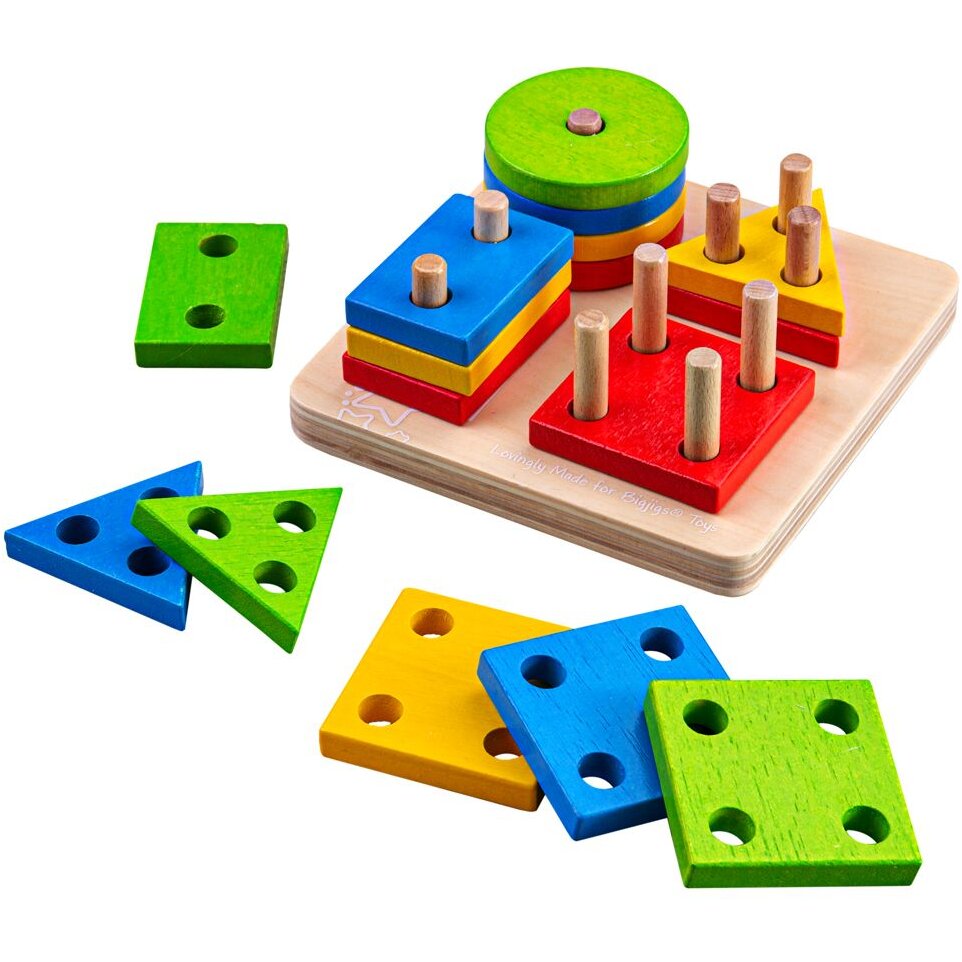 * Aceasta tabla din lemn cu patru zone de sortare vine impreuna cu numeroase patrate, dreptunghiuri, cercuri si triunghiuri, toate in culori pastelate, pentru a capta atentia copilului si pentru a il ajuta sa invete in acelasi timp.
